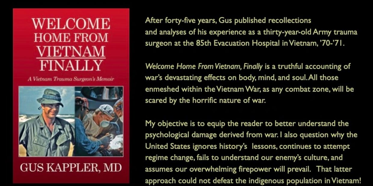 Within two months of completing his surgical training in July 1970, Gus was serving as a thirty-year-old Army trauma surgeon in Vietnam. After witnessing daily, for a year, the devastation of war on body, mind, and soul, Gus was forever changed.